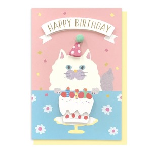 ケーキやリボン、とんがり帽子のポンポンが飛び出ているのがとってもキュート。猫好きさんへのプレゼントに添えたら、とっても喜ばれることまちがいなしですね☆ずっと飾っておきたくなる素敵なカードです♪