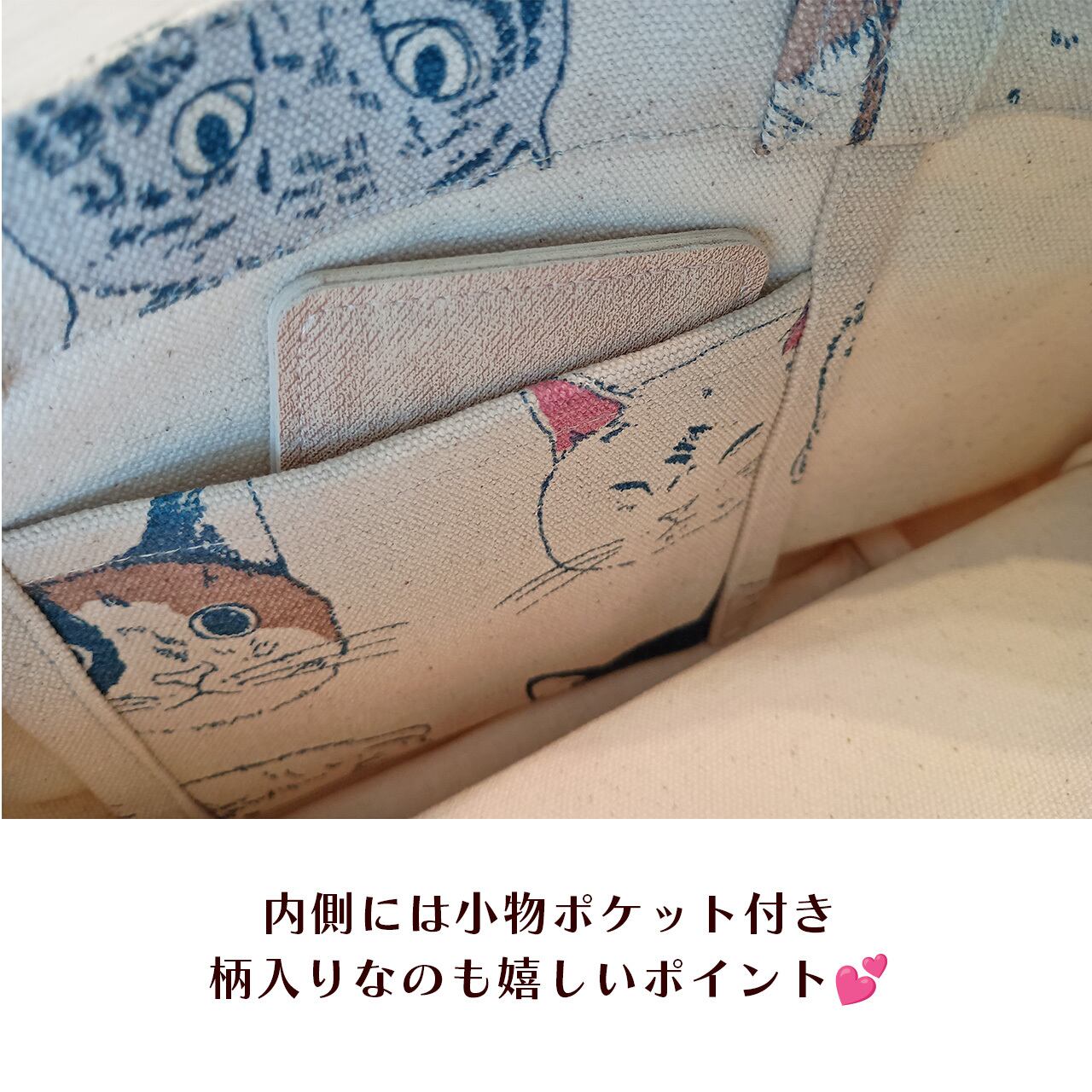 内側には鍵などの小物を入れるのに便利な内ポケット付き。ポケットにも猫ちゃんがいるのが良いですね♡