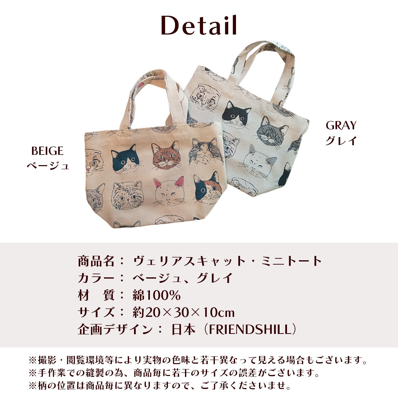 猫柄 トートバッグ おしゃれ ミニトート ランチトート ポケット付き ねこ ギフト プレゼント 猫好き 大人 かわいい ヴェリアスキャット フレンズヒル キャンバス 綿 コットン 猫雑貨 猫グッズ【320】 | 猫グッズ・猫雑貨 専門店 ChatsChats(シェシェ)