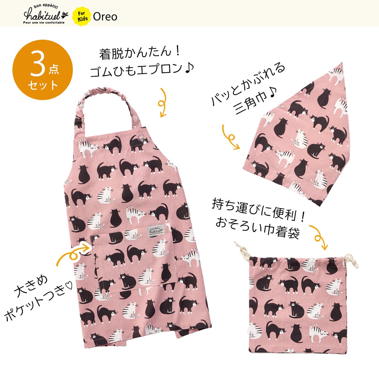 商品名: Oreo2 キッズエプロン【3点セット】