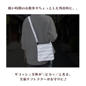 夜間の外出やペットのお散歩、ウォーキング等で活躍する、反射材(リフレクター)素材を使用したショルダーバッグです。