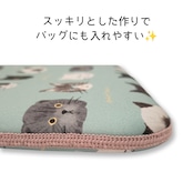 A4サイズのノートPCにぴったりな、可愛い猫ちゃんいっぱいのキャリングケースです。軽量でかさばらないスッキリとしたデザインなので、かばんに入れやすく、弾力のあるクッション素材が大切なPCを傷や衝撃から守ってくれます。A4クリアホルダーも入ります。
