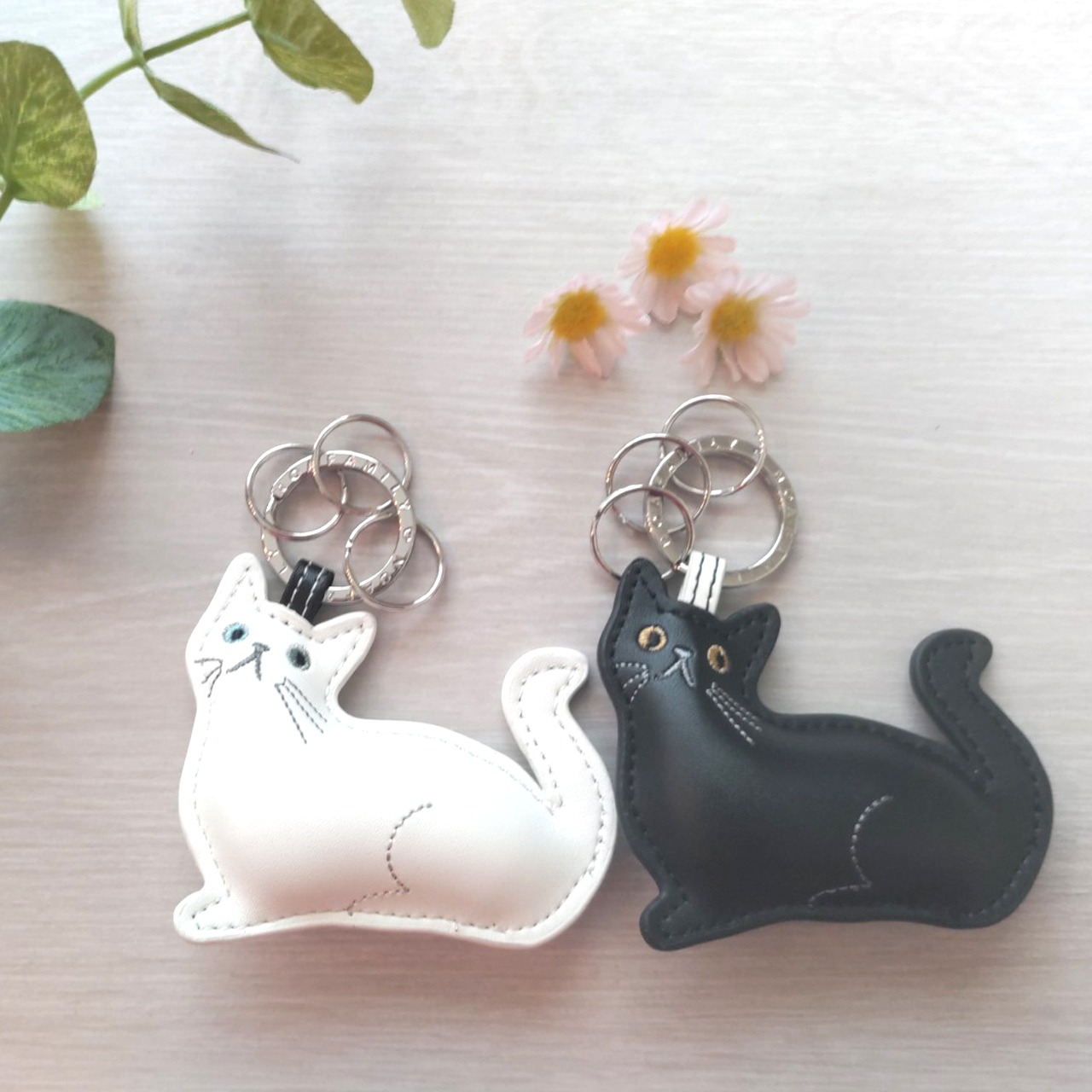 猫 キーリング キーホルダー 牛革 レザー 革 かわいい おしゃれ ミミキーリング ノアファミリー 黒 白 ブラック クリーム ノアファミリー noa family MIMI キーケース 鍵 猫雑貨 猫グッズ ねこ ネコ キャット プレゼント ギフト 【054】 | 猫グッズ・猫雑貨 専門店 ChatsChats(シェシェ)