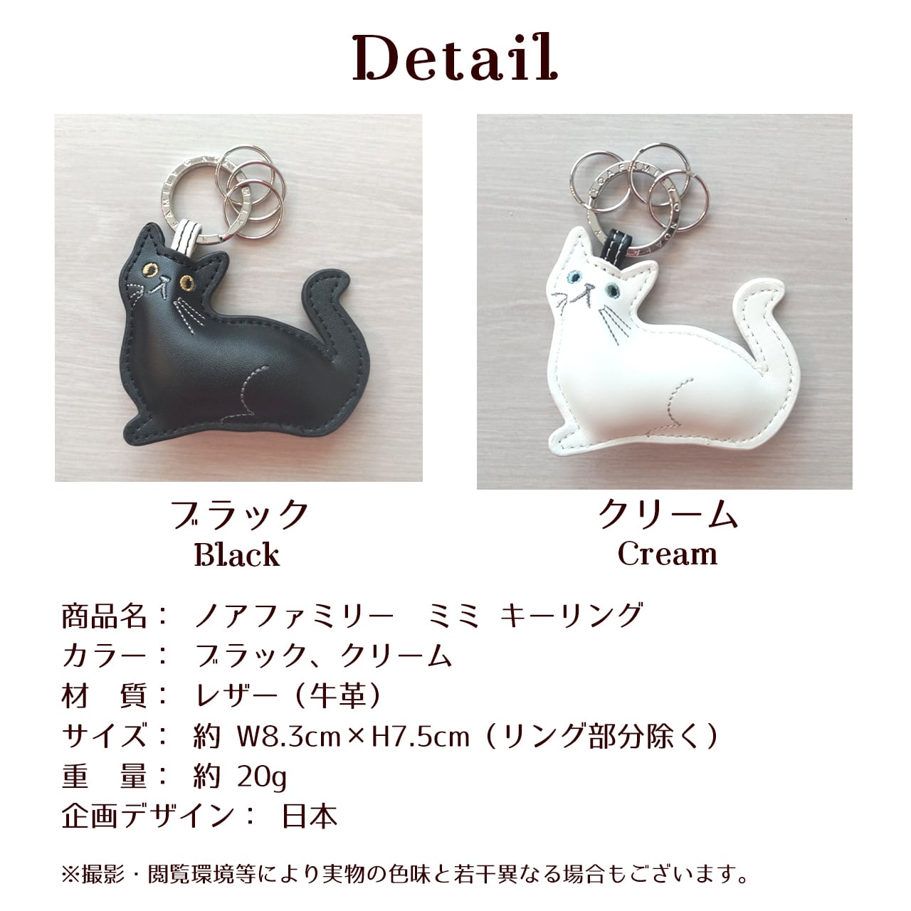 猫 キーリング キーホルダー 牛革 レザー 革 かわいい おしゃれ ミミキーリング ノアファミリー 黒 白 ブラック クリーム ノアファミリー noa family MIMI キーケース 鍵 猫雑貨 猫グッズ ねこ ネコ キャット プレゼント ギフト 【054】