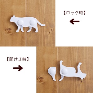 かわいい猫の形をした両開き(観音開き)扉用・安全ロックです。