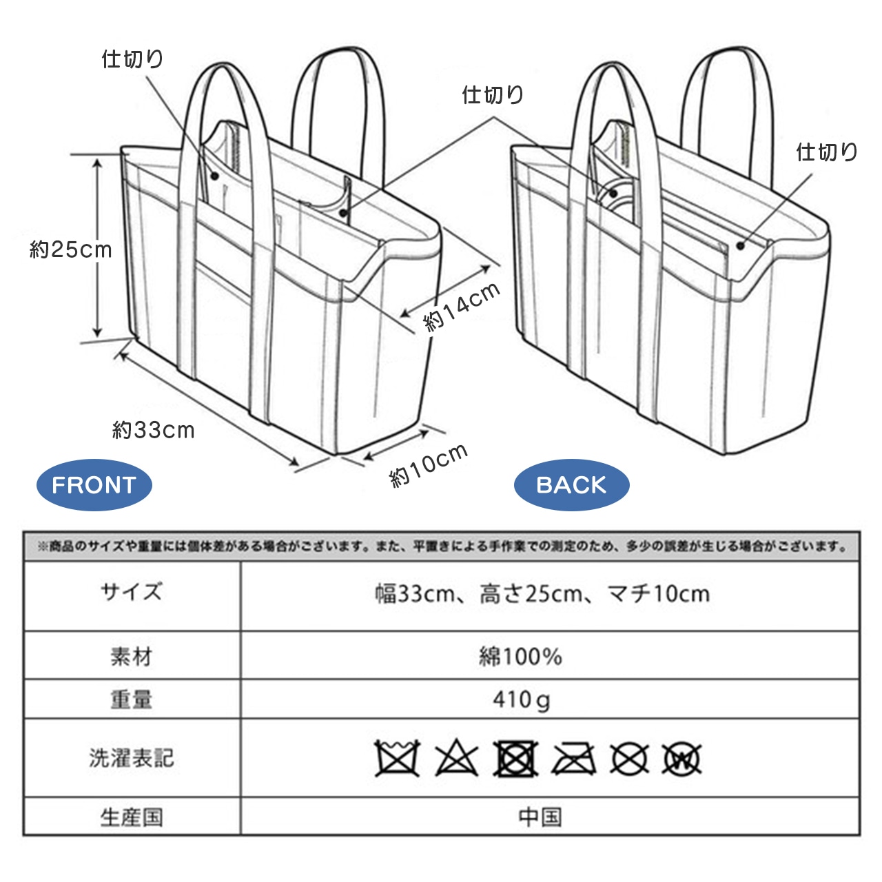 サイズ:約 幅33cm×高さ25cm×マチ10cm