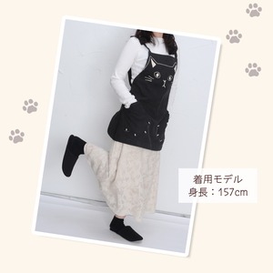 猫好きにはたまらない、 オシャレでカワイイ猫柄エプロンです♪ ポイントは何と言ってもこのポケット!思わず手を入れたくなりますね♪
