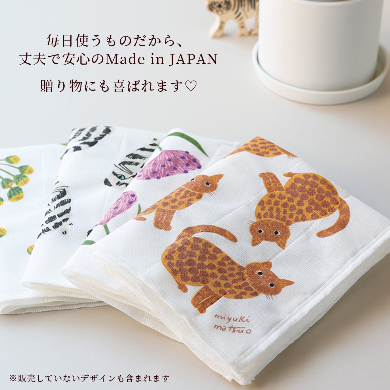 松尾ミユキさんの描くネコのイラストが素敵な、5枚重ねのかや織りキッチンクロスです♪